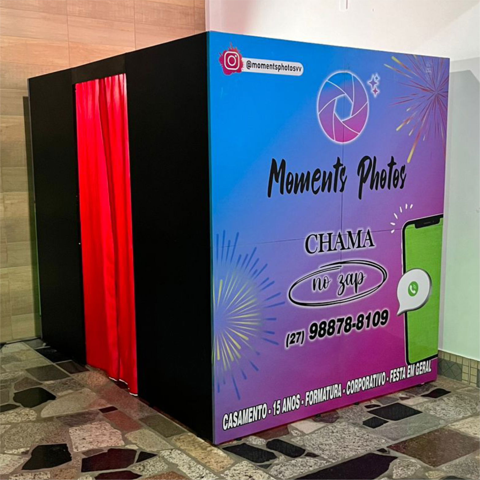 O produto mais antigo para entretenimento em festa e eventos, e um dos mais legais, aqui a diversão é garantida, um produto que se diferencia dos demais, chamando muita atenção no seu evento, devido o seu tamanho exlcusivo, levando descrição para os seus convidados, já que eles precisam entrar dentro da estrutura para tirar as fotos, é o produto mais procurado para festas de 15 anos.