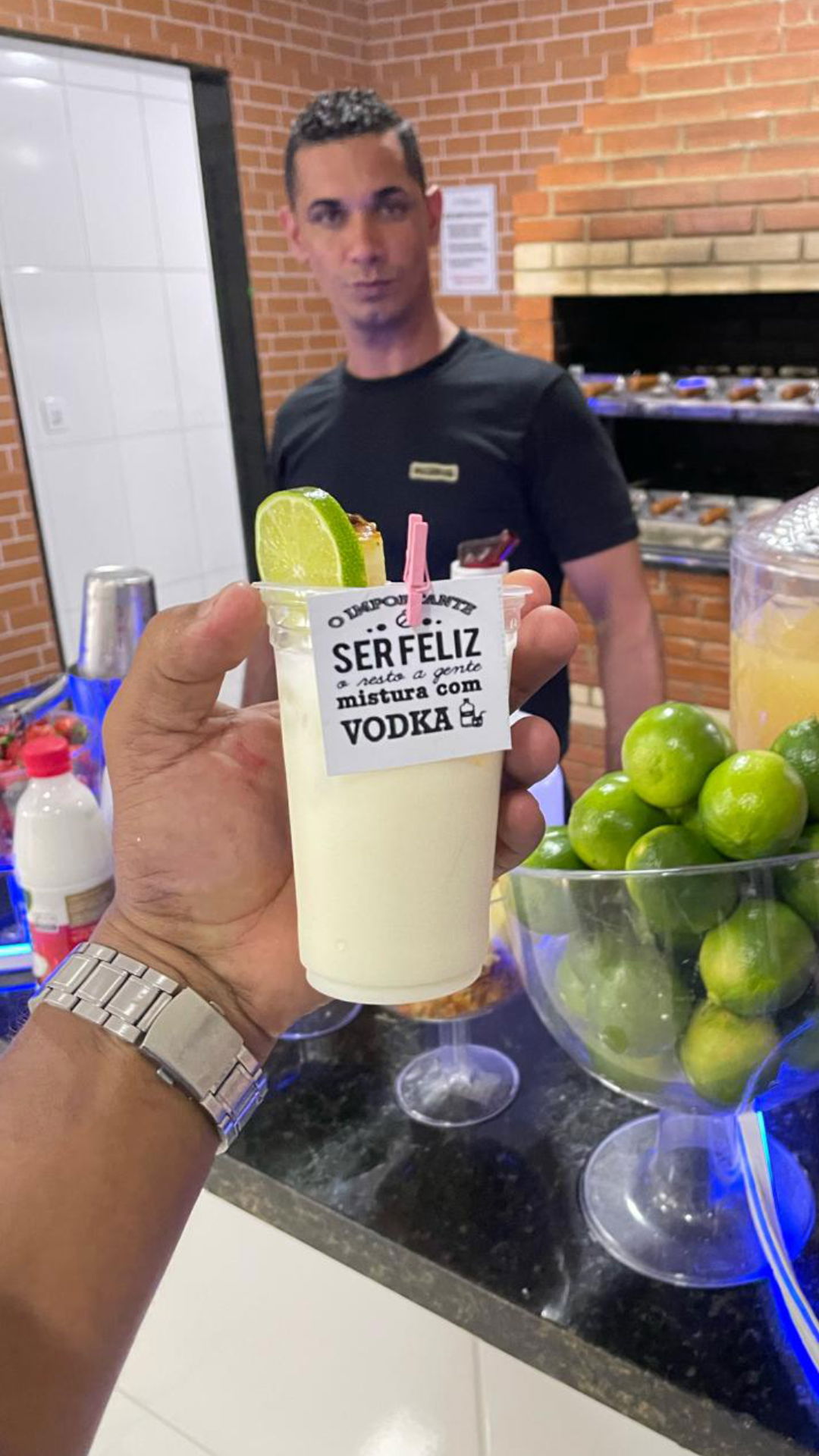 Todo matérial necessário para a produção dos Drink's são por nossa conta, usamos sempre descartáveis premium, o copo é o mais parecido com o acrílico, usamos sempre insumos de primeira linha.