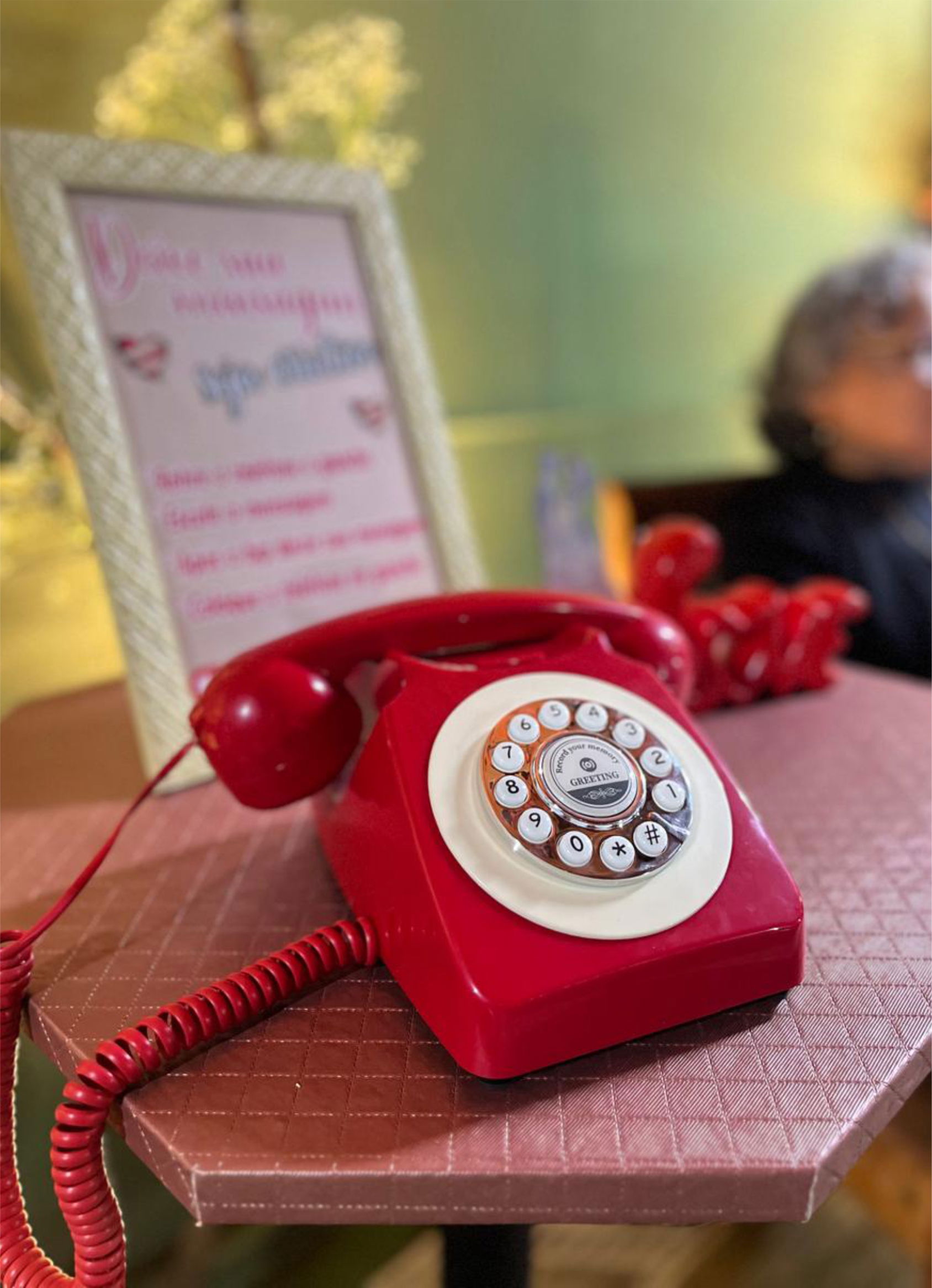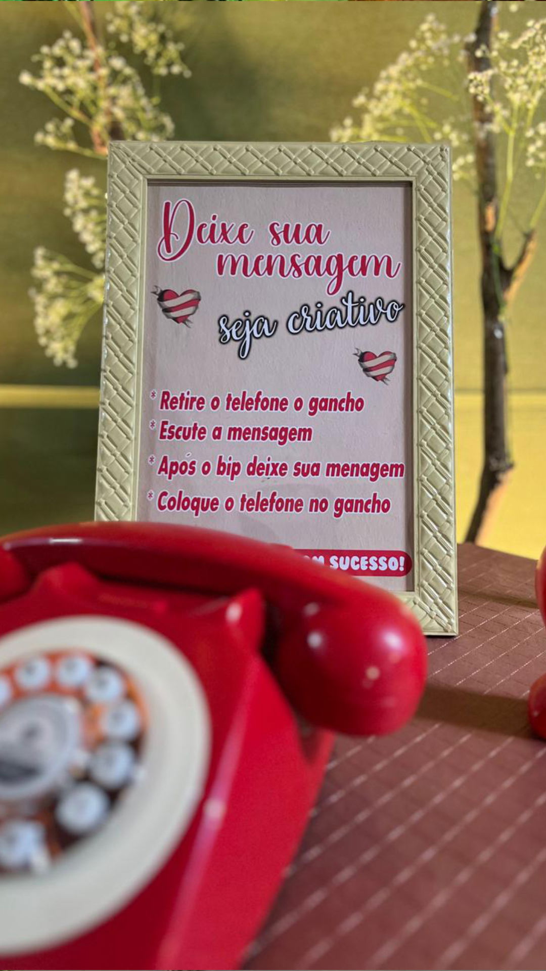 Seu estilo retro é que charme do produto, nele o anfitrião vai deixar uma mensagem salva, os convidados no decorrer do evento, os convidados irão tirar o telefone do gancho, escutarão a mensagem do anfitrião, e após o bipe irão gravar uma mensagem carinhosa.