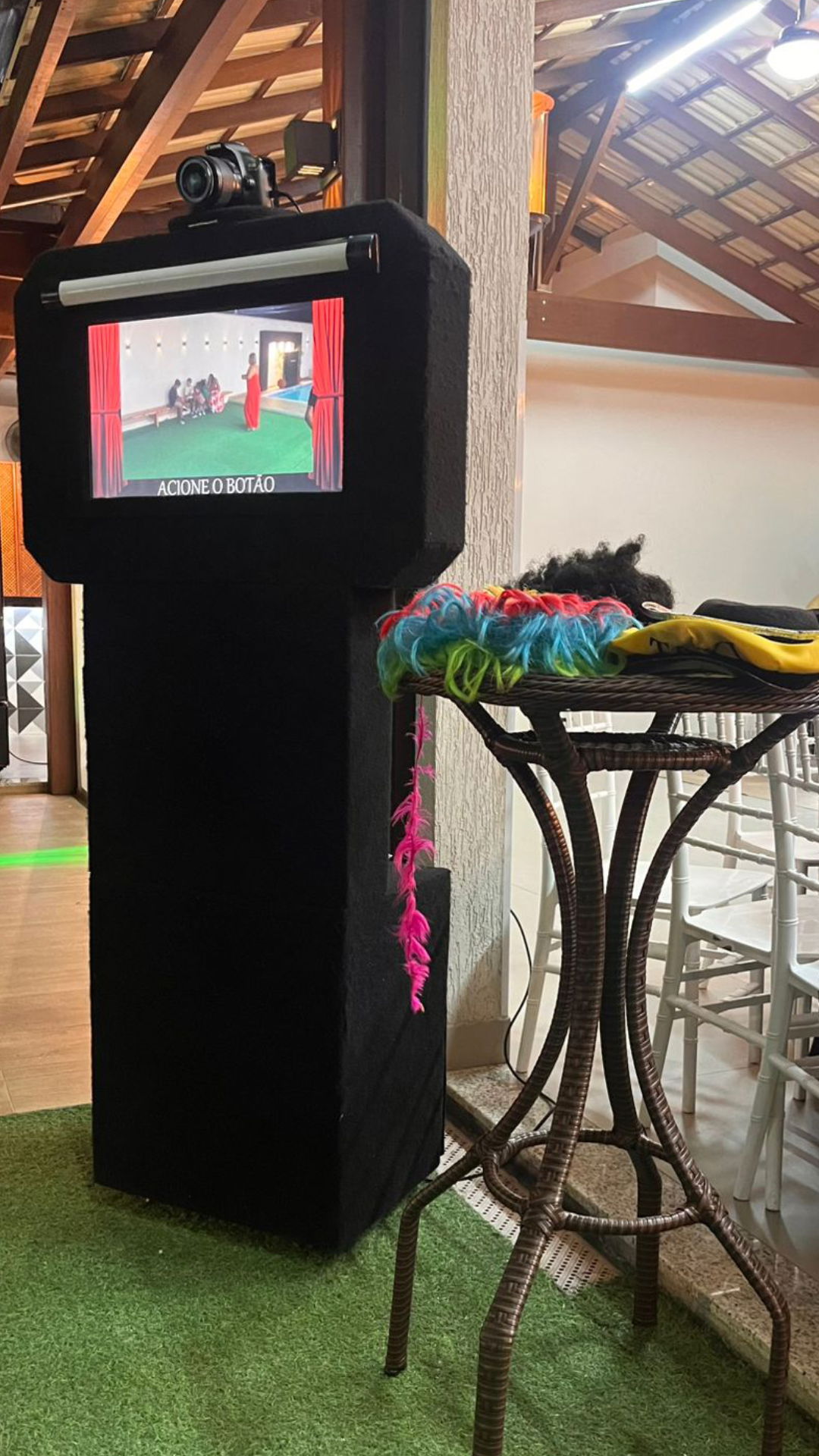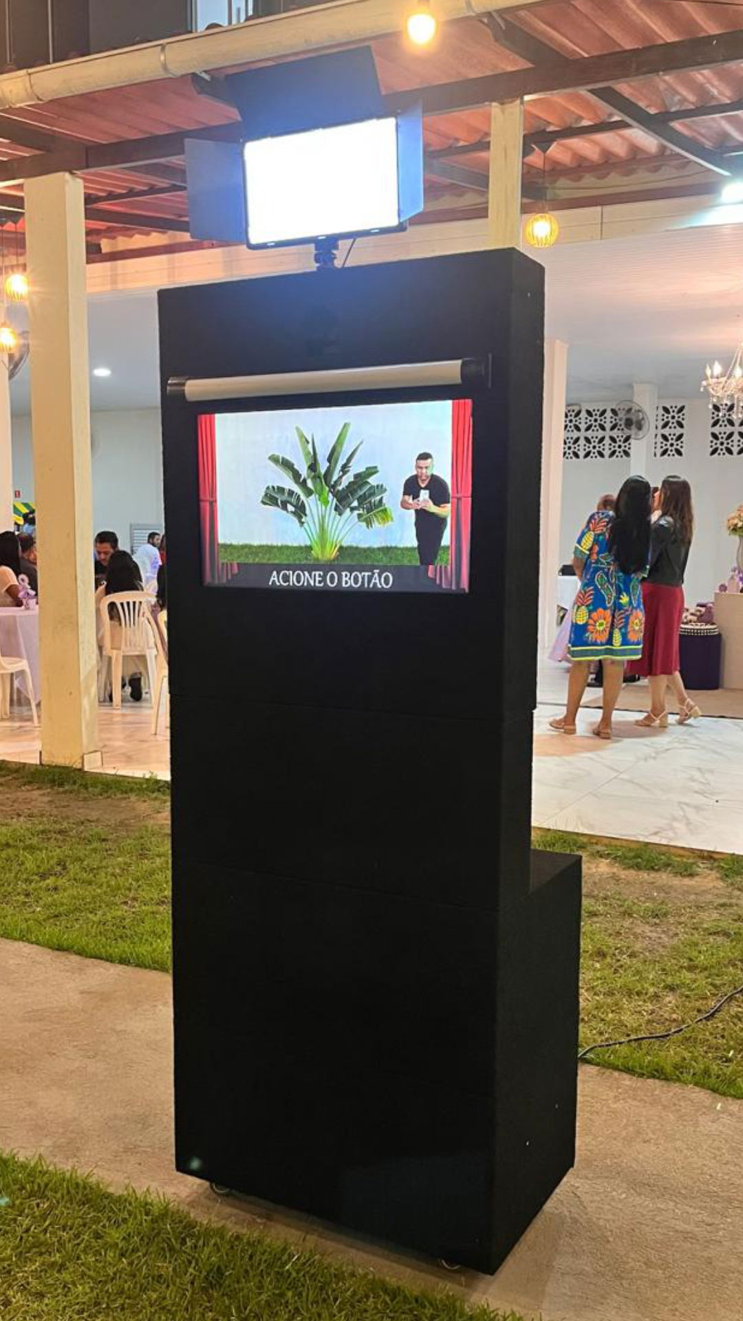 Nossos modelos são todos na cor preta, para não atrapalhar em nada a sua decoração, modelos que contam com um monitor de 27" 4k, conta com refletor profissional dimerizável, adequado para fotográfia, única empresa na Grande Vitória que tem modelo de totem que usa câmera profissional.